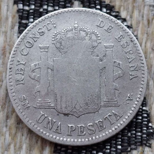 Испания 1 песета 1900 года. Король Альфонсо ХIII. Герб. Серебро! Сторгуй за свою цену, предложи обмен!