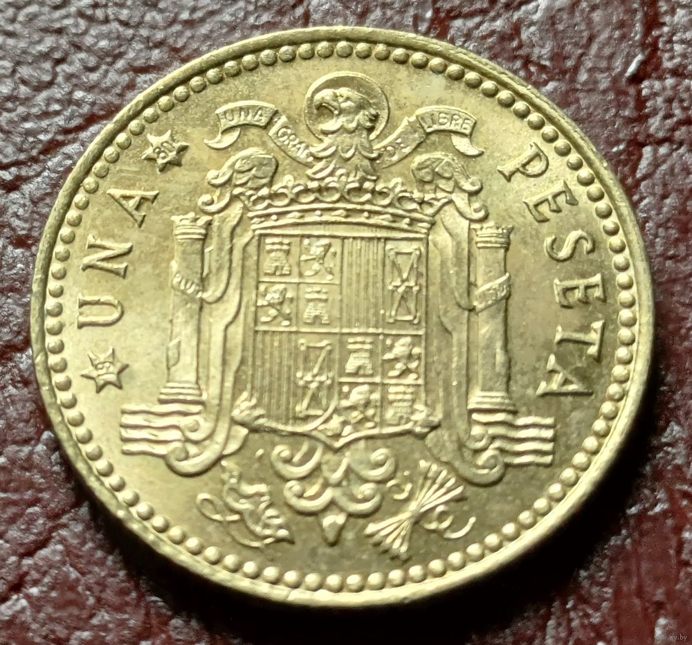 Испания 1 песета, 1975 80 внутри звезды ( 1-6-8 )