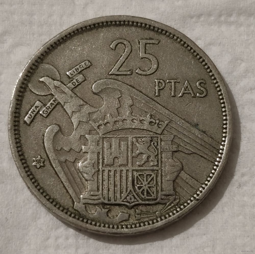 Испания 25 песет, 1957 (58 внутри звезды) (2-15-219)