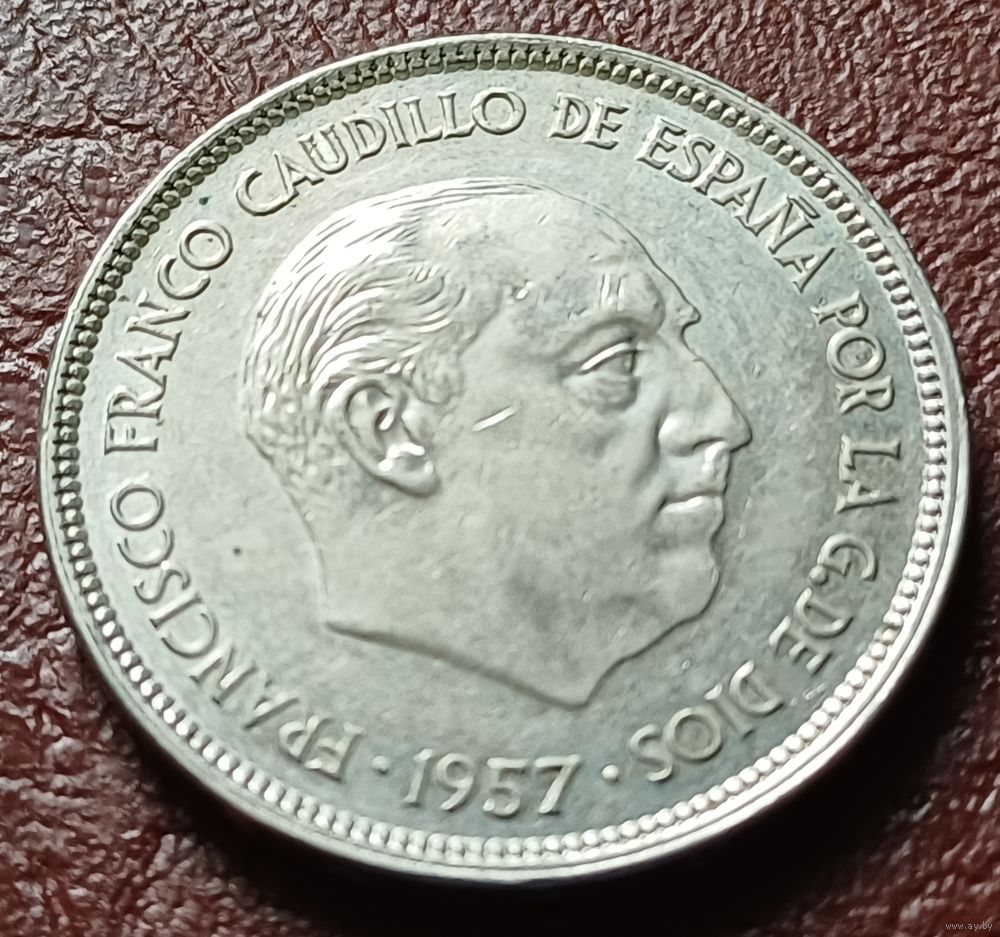 Испания 25 песет, 1957 74 внутри звезды ( 1-12-6 )