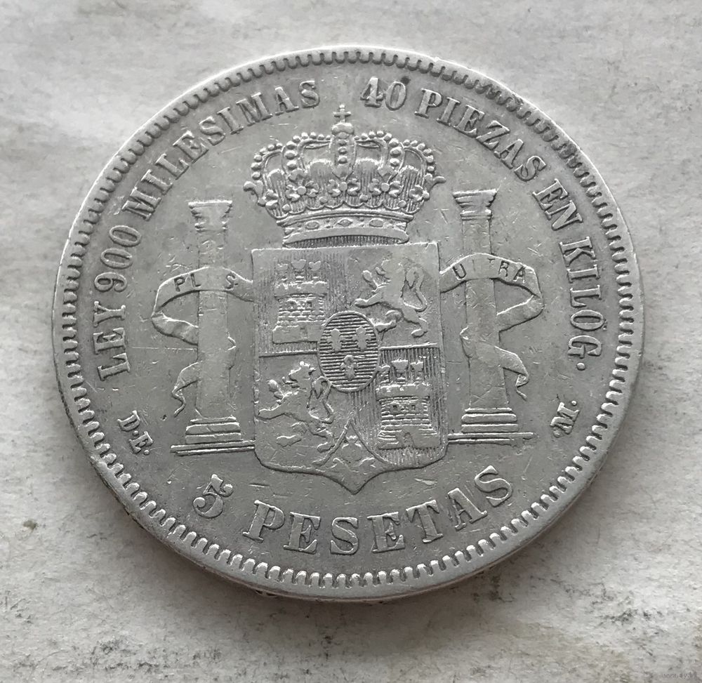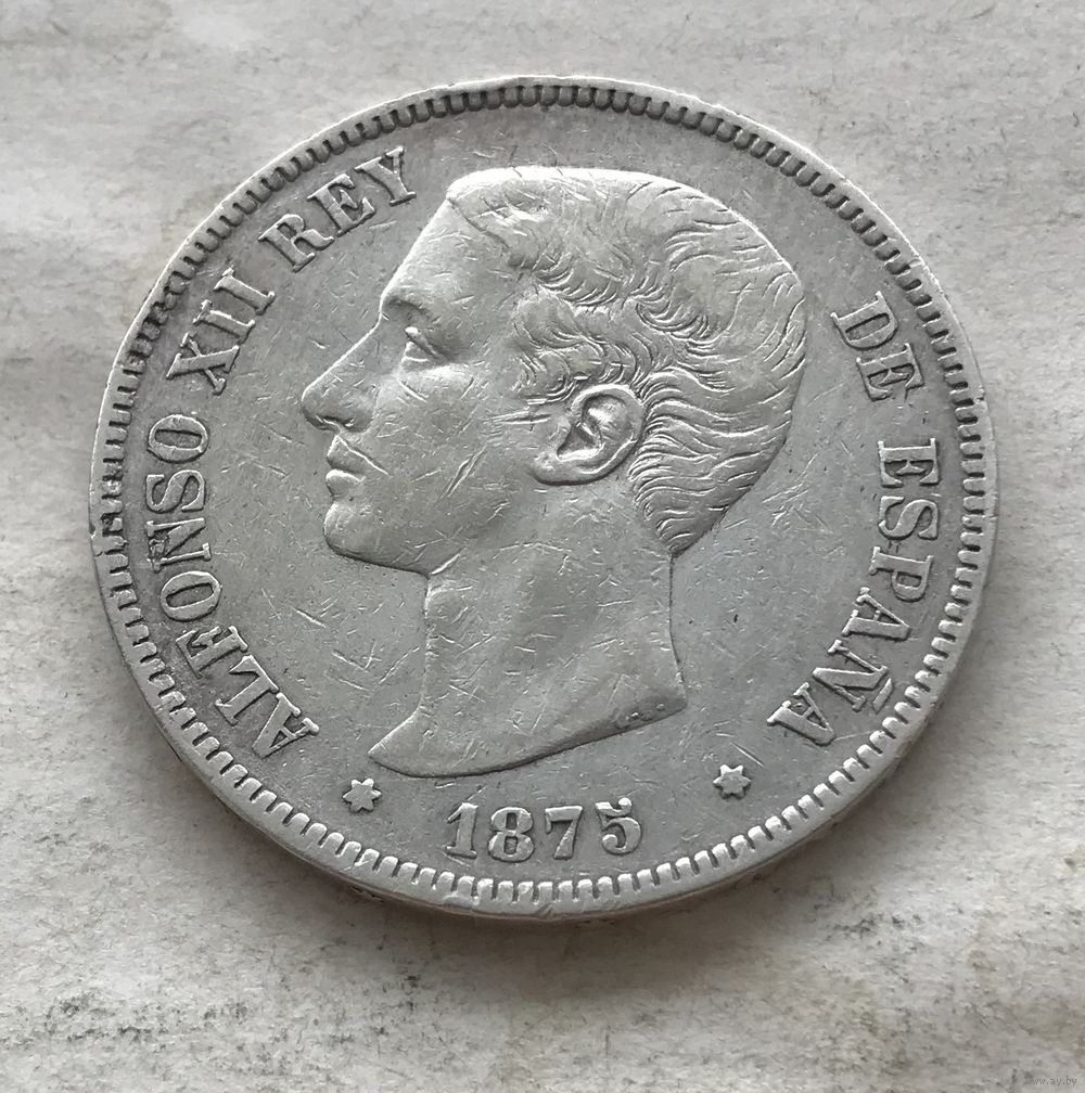 Испания 5 песет 1875 - Король Альфонсо XII (1875 - 1885) - серебро 0,900 пр. 25 грамм