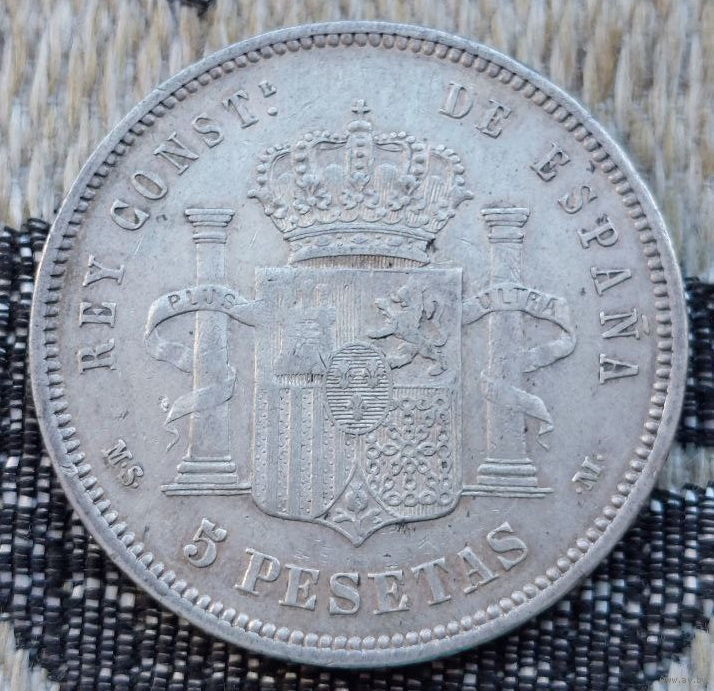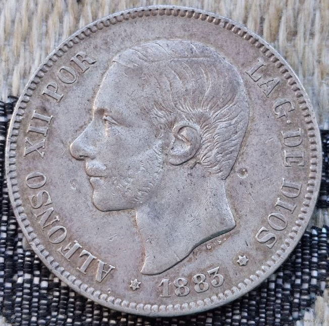 Испания 5 песет 1883 года. Король Альфонсо XII. Герб. Серебро! Сторгуй за свою цену, предложи обмен! S130