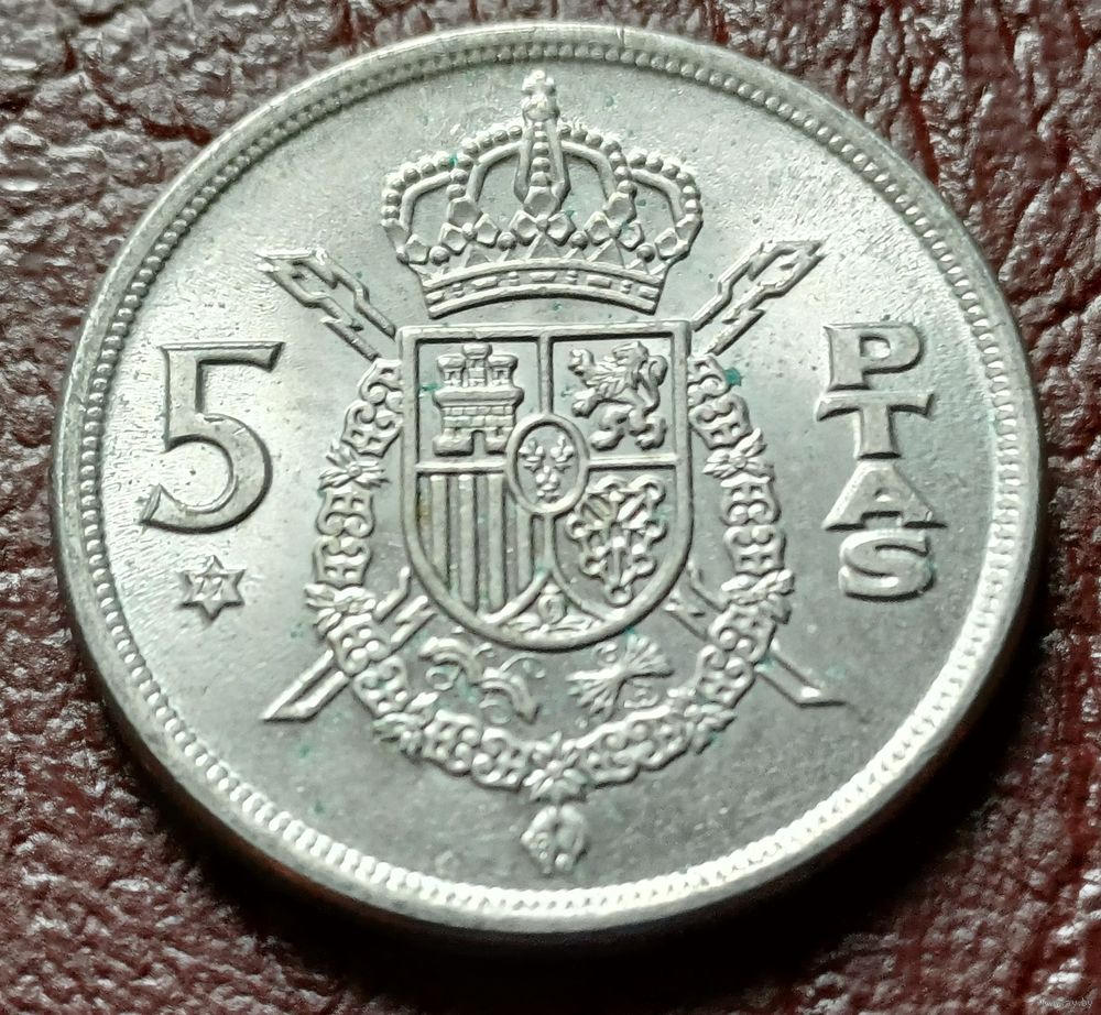 Испания 5 песет, 1975 77 внутри звезды ( 1-6-7 )