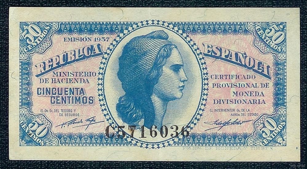 Испания 50 сантимов 1937 год.