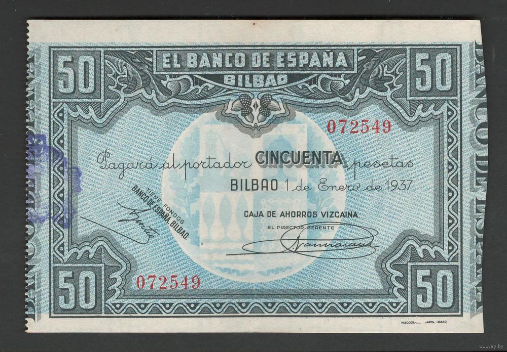 Испания Бильбао 50 песет 1937 года. Тип PS-561. Состояние XF+