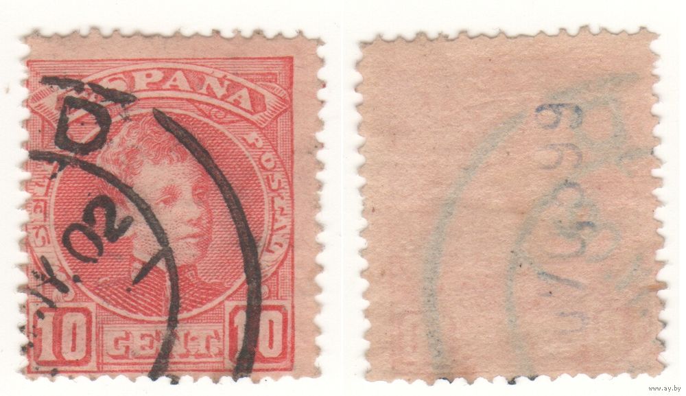 Испания (Mi) ES 208 10 сентимо 1901 год King Alfonso XIII - Portrait of a young Alfonso XIII - Blue Control number on backside (m29)