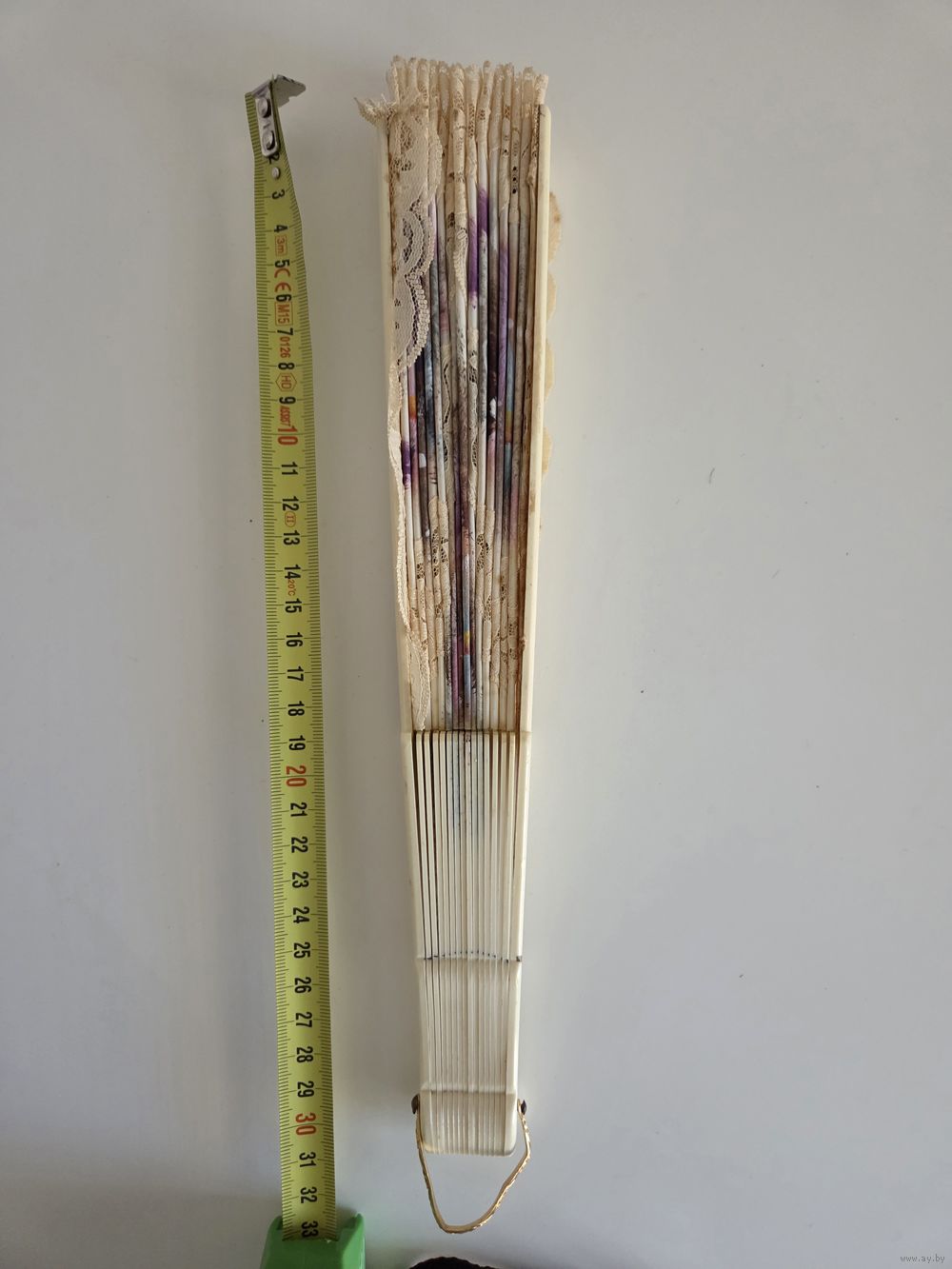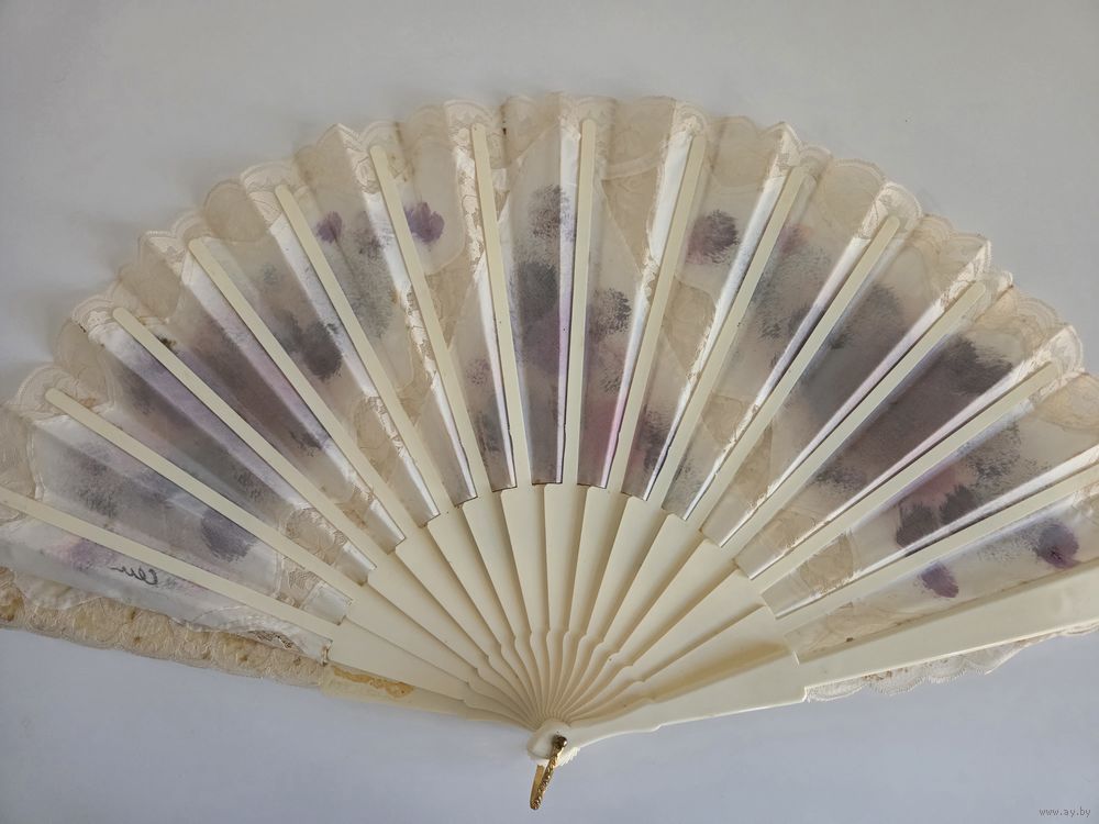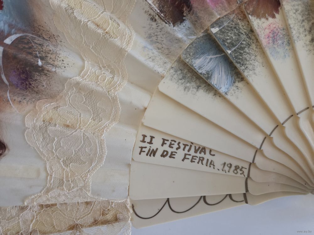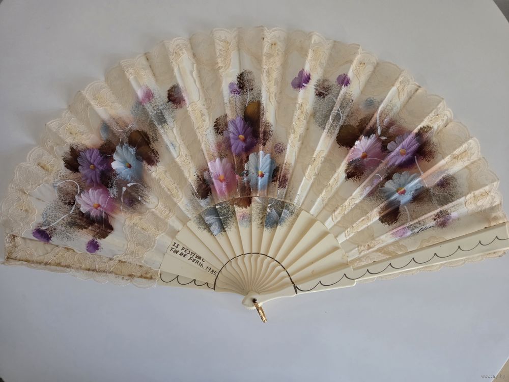 Красивый испанский складной веер, украшенный кружевом и ручной росписью.