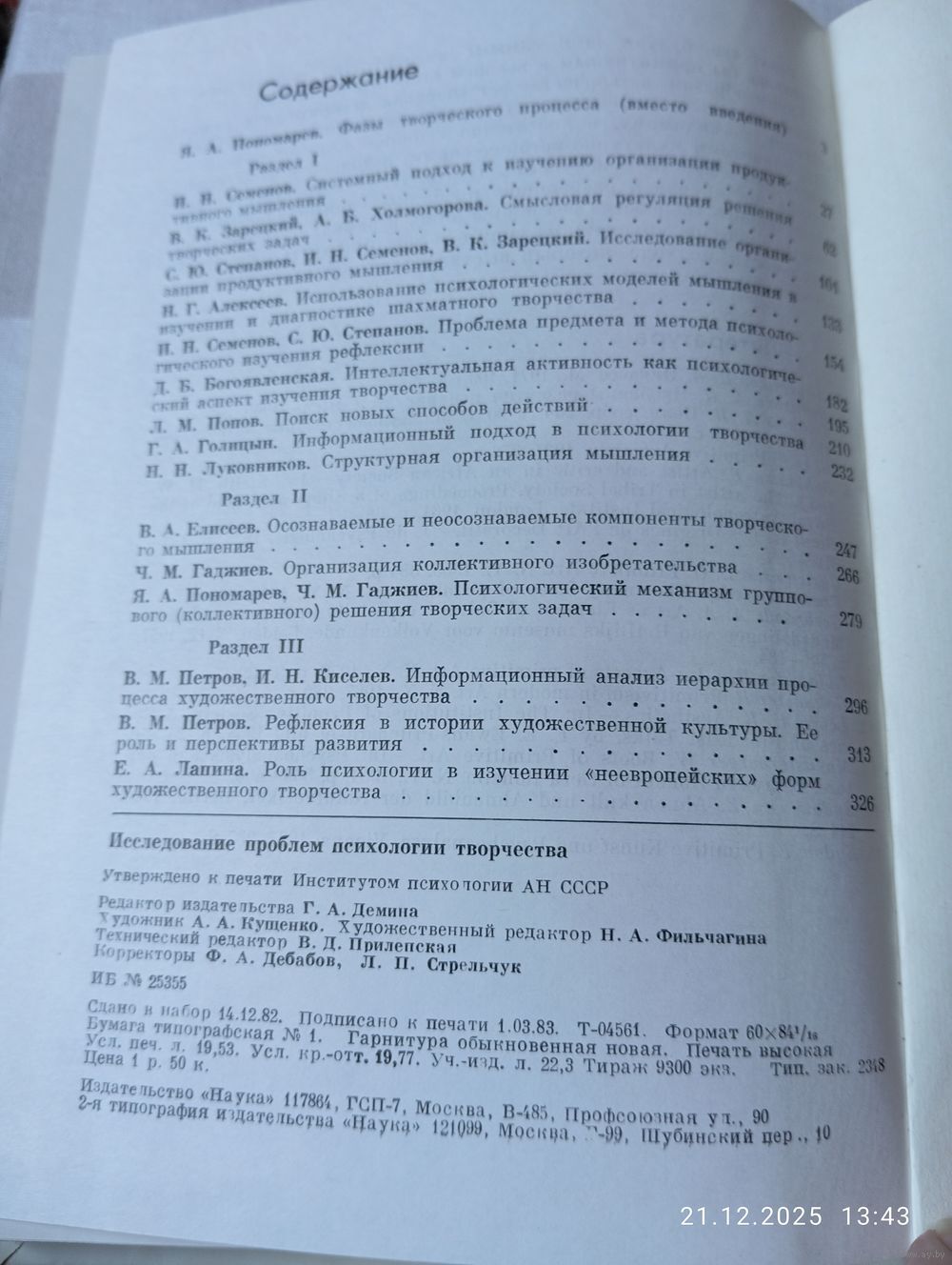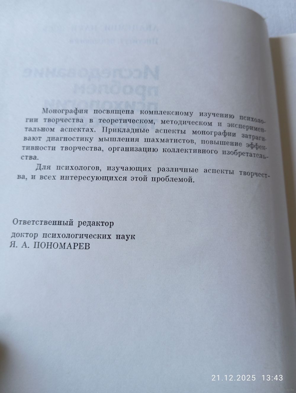 Исследование проблем психологии творчества. М. Наука 1983. В хорошем состоянии, тв переплет. 336 с. Тираж 9300. Возможность отправки Белпочтой, полная предоплата