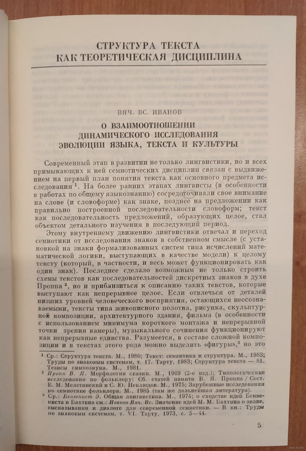 Книга подводит некоторые итоги исследованиям текста, ведущимся в Секторе структурной типологии. Текст понимается в общем семиотическом смысле (словесный, мифо-ритуальный, изобразительный и т. п.). Ставится своего рода эксперимент по освоению предельно широкого круга областей и выработке единой (в общем плане) методики исследования.