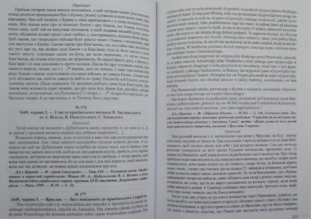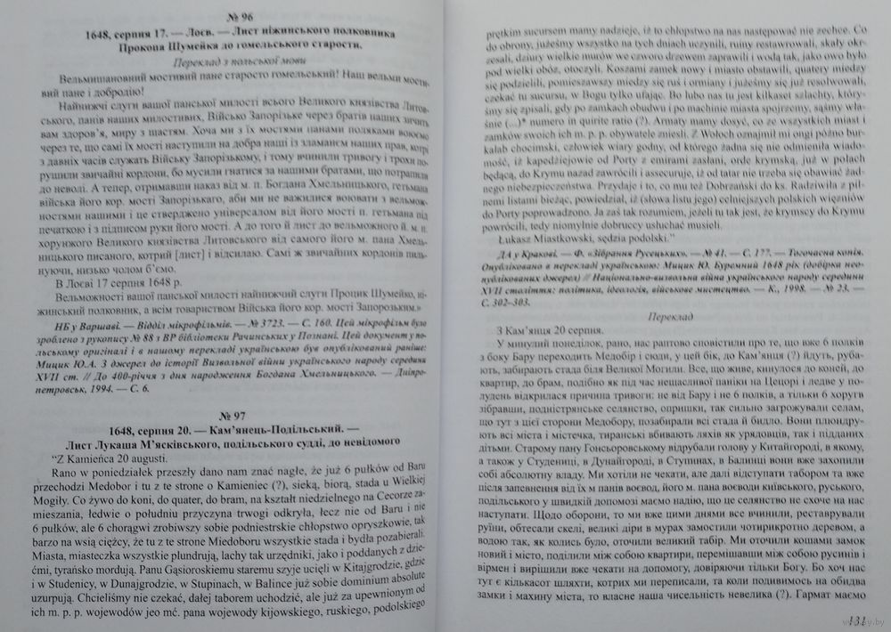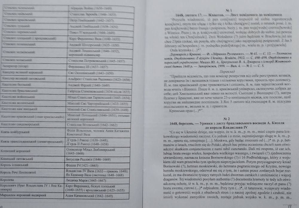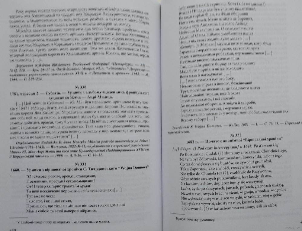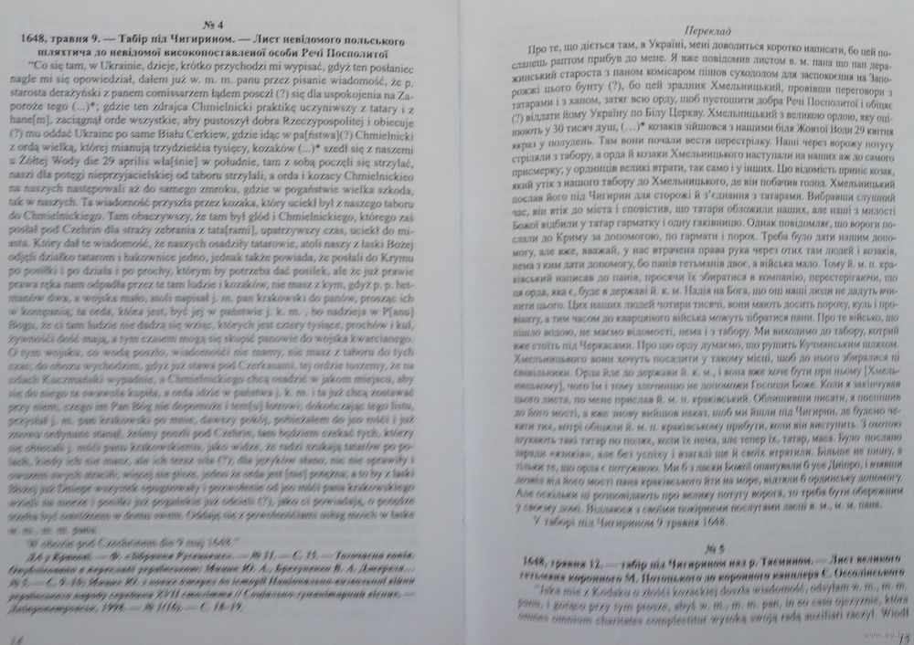 Большой энциклопедический формат. Ляссе. Тираж 300 экз. 680 стр. Источники по Национально-освободительной войне под предводительством Богдана Хмельницкого (1648-1658) охватывают казацкие летописи, дипломатическую переписку, польские хроники, государственные акты и мемуары, такие как «Летопись Самовидца», «Палинодия» (Кассиян Сакович), «Воспоминания» Яна Собеского, материалы Гетманщины (Жолкевский, Самойлов), а также акты Переяславской рады и Зборовского/Виленского сеймов, отражающие борьбу за автономию и воссоединение с Россией.
