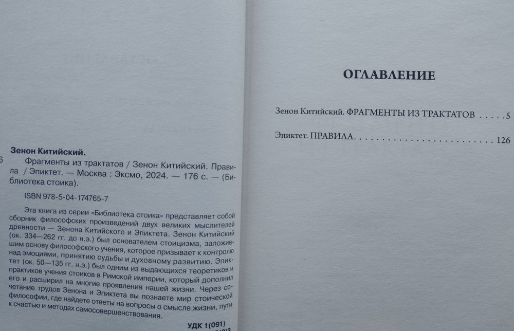 Тираж 2000 экз. 178 стр. Книга «Истоки стоицизма» раскрывает основы античной школы, зародившейся в III в. до н.э. Ключевые идеи: жизнь в согласии с природой (Логосом), развитие добродетелей (мудрость, справедливость, мужество, умеренность) и невозмутимость (апатия) перед лицом судьбы. Эта книга из серии "Библиотека Стоика" представляет собой сборник философских произведений двух великих мыслителей древности – Зенона Китийского и Эпиктета. Зенон Китийский (ок. 334-262 гг. до н.э.) был основателем стоицизма, заложившим основу философского учения, которое призывает к контролю над эмоциями, принятию судьбы и духовному развитию. Эпиктет (ок. 50-135 гг. н.э.) был одним из выдающихся теоретиков и практиков учения стоиков в римской империи, который дополнил его и расширил на многие проявления нашей жизни. Через сочетание трудов Зенона и Эпиктета вы познаете мир стоической философии, где найдёте ответы на вопросы о смысле жизни, пути к счастью и методах самосовершенствования.