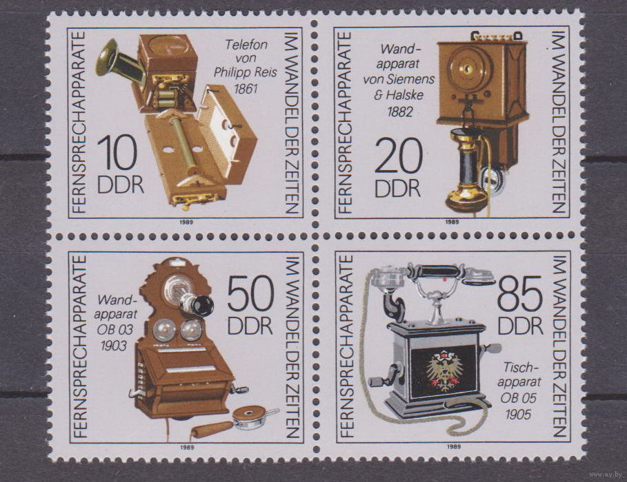 Исторические телефоны Германия ГДР 1989 год Лот 54 ЧИСТАЯ сцепка ПОЛНАЯ СЕРИЯ около 30% от каталога по курсу 3 р