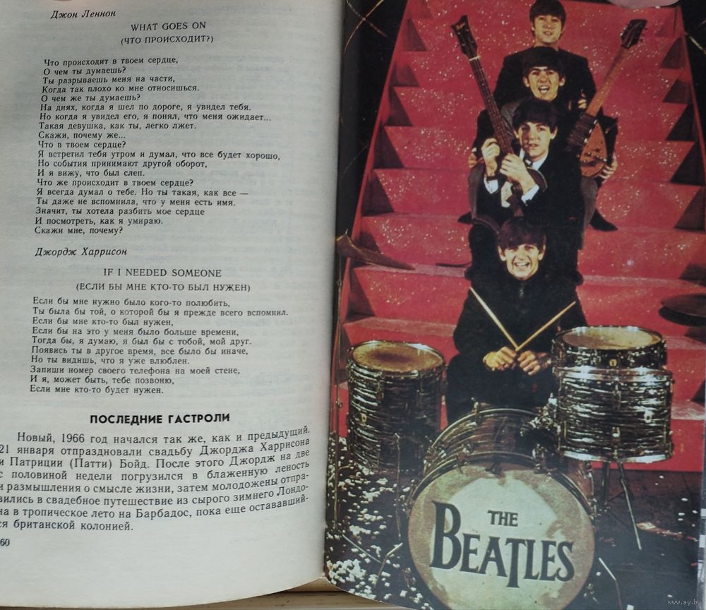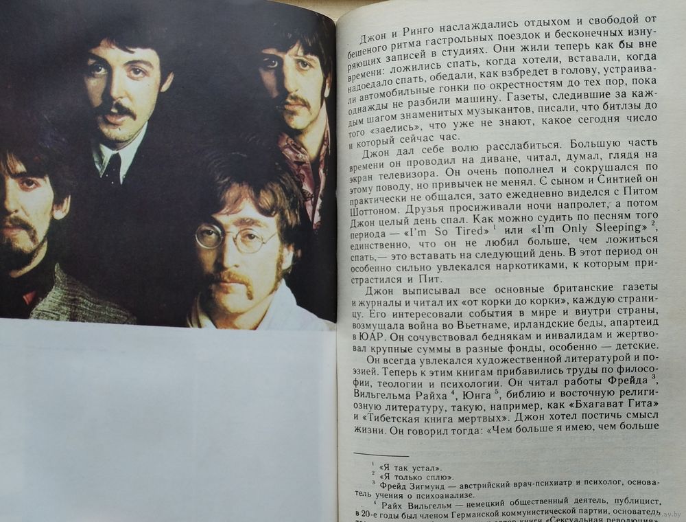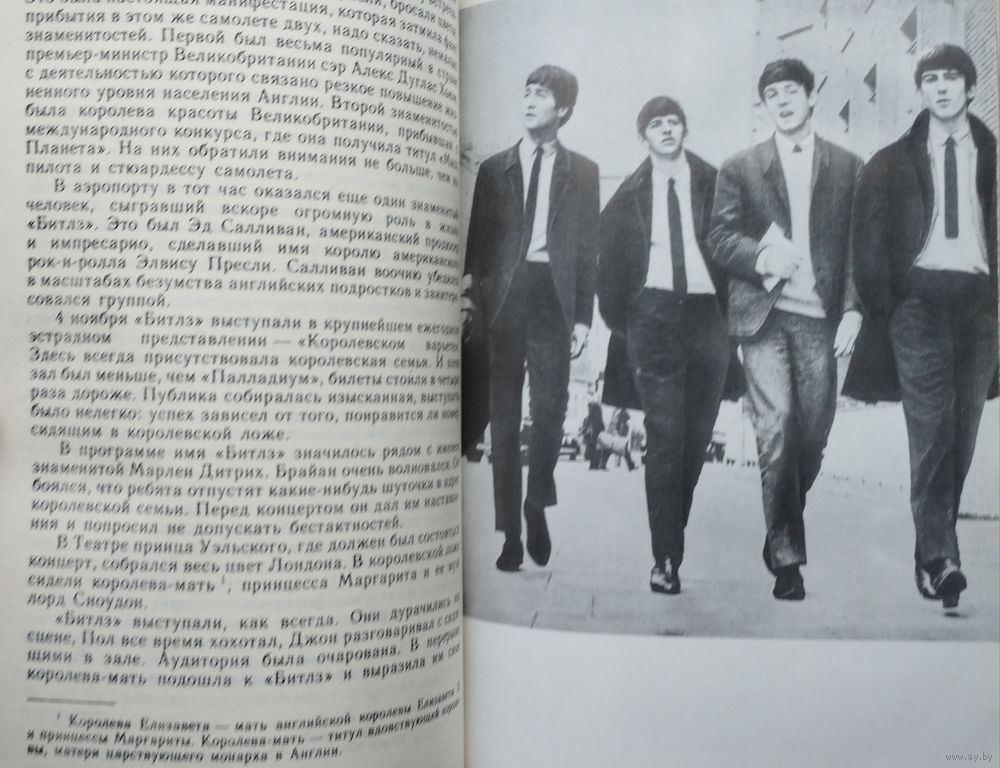Тираж 80000 экз. 288 стр. Предлагаемая книга является первой отечественной работой, посвященной истории всемирно известного ансамбля ``Битлз``. В книге, написанной живо и увлекательно, рассказывается о становлении, развитии и расцвете ансамбля, анализируются причины его распада. Подробно рассматривается последующий творческий путь каждого из участников ансамбля. Издание снабжено справочным аппаратом (дискография, библиография).