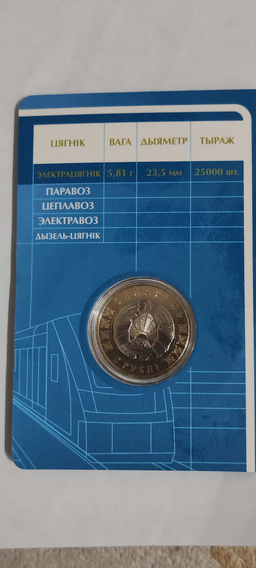 История белорусской железной дороги 2 рубля электроцягник 2025г