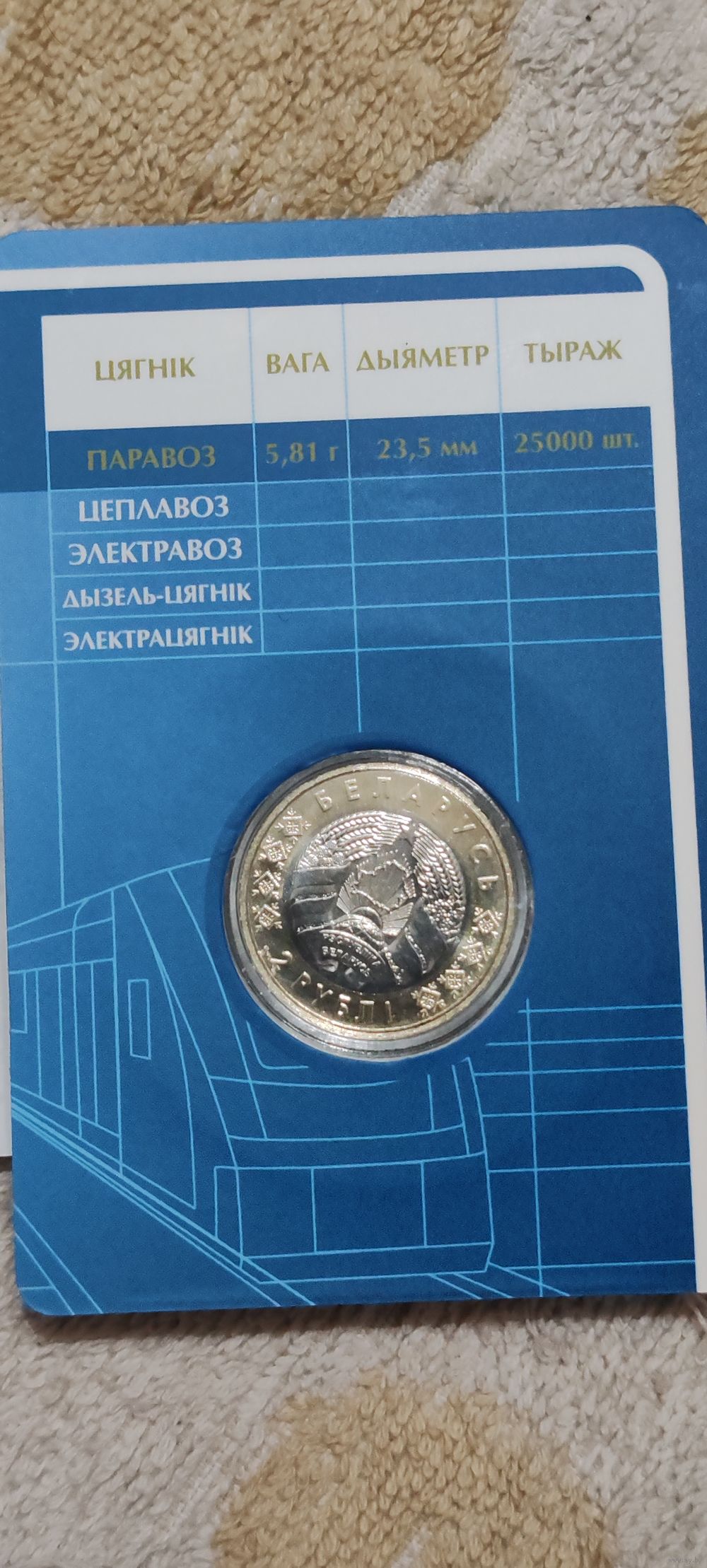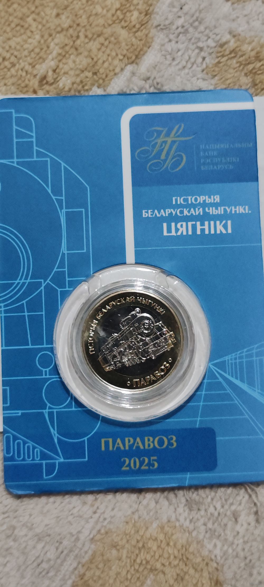 История белорусской железной дороги 2 рубля паровоз 2025г