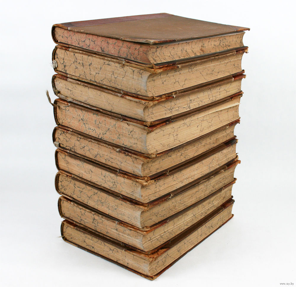 Состояние: загрязнения, надрывы корешков отдельных томов, незначительные следы воздействия влаги на трех томах. Полный комплект иллюстраций.