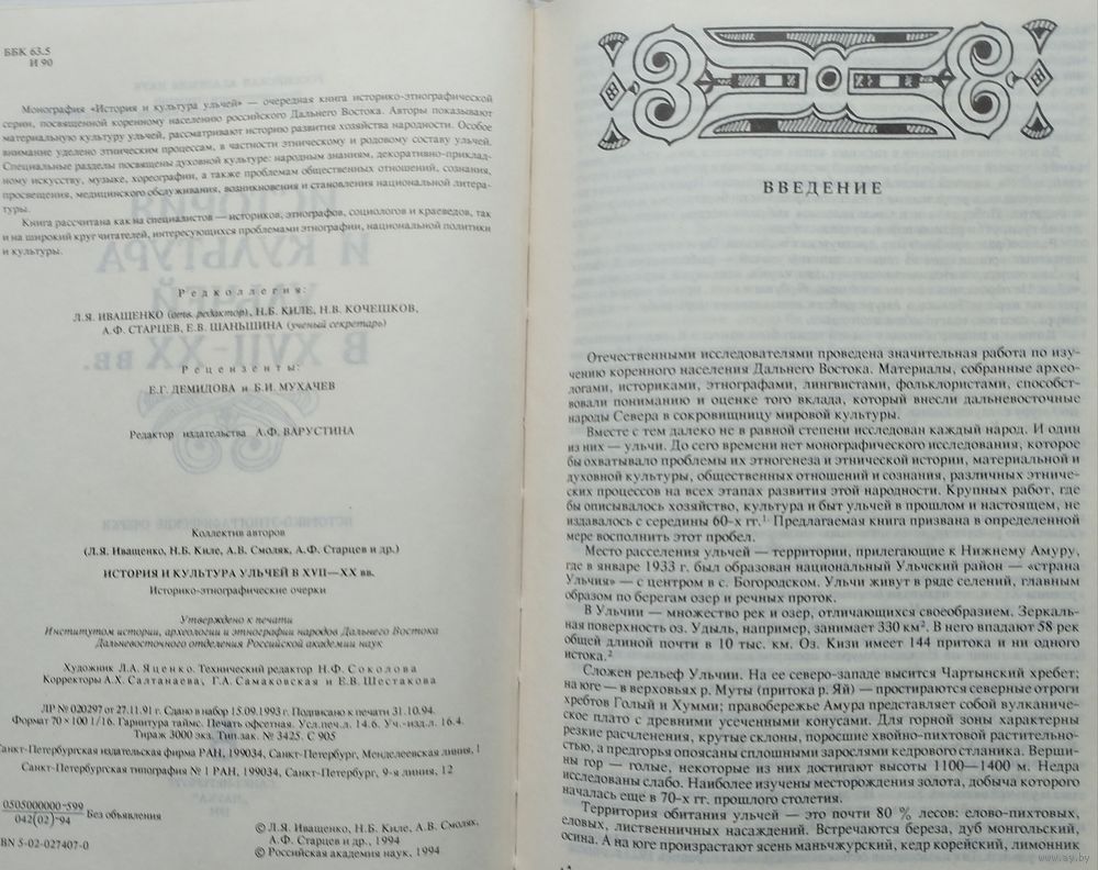 Цена за 1 книгу. Большой энциклопедический формат. Тираж 3000 экз. 178 стр. Монография «История и культура ульчей» — очередная книга историко-этнографической серии, посвященной коренному населению российского Дальнего Востока. Авторы показывают материальную культуру ульчей, рассматривают историю развития хозяйства народности. Особое внимание уделено этническим процессам, в частности этническому и родовому составу ульчей. Специальные разделы посвящены духовной культуре: народным знаниям, декоративно-прикладному искусству, музыке, хореографии, а также проблемам общественных отношений, сознания, просвещения, медицинского обслуживания, возникновения и становления национальной литературы.