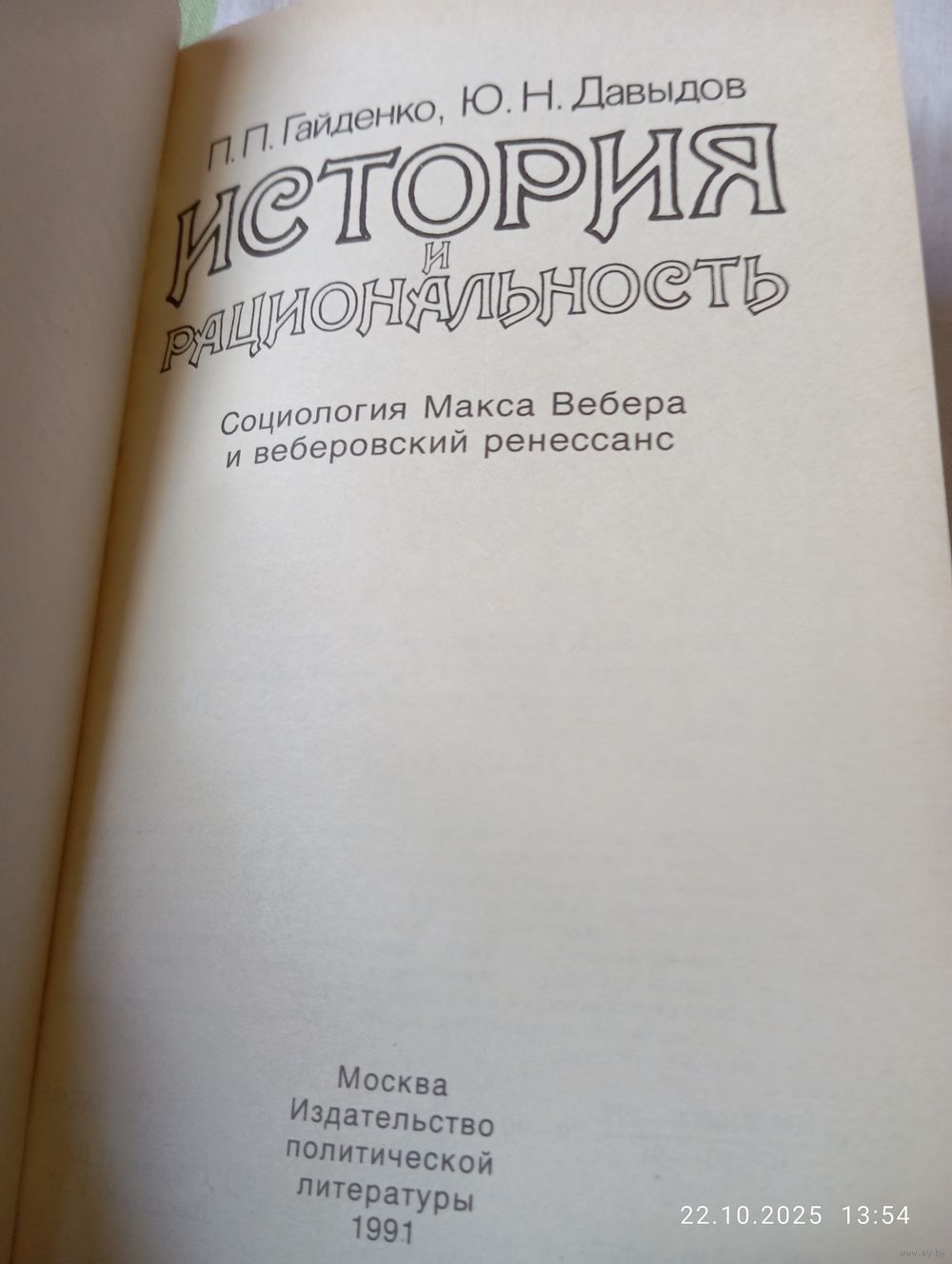 История и рациональность. Социология М. Вебера. П. Гайденко , Давыдов Ю. М. Политиздат 1991. В прекрасном состоянии, тв переплет. 367 с. Возможность отправки Белпочтой, полная предоплата
