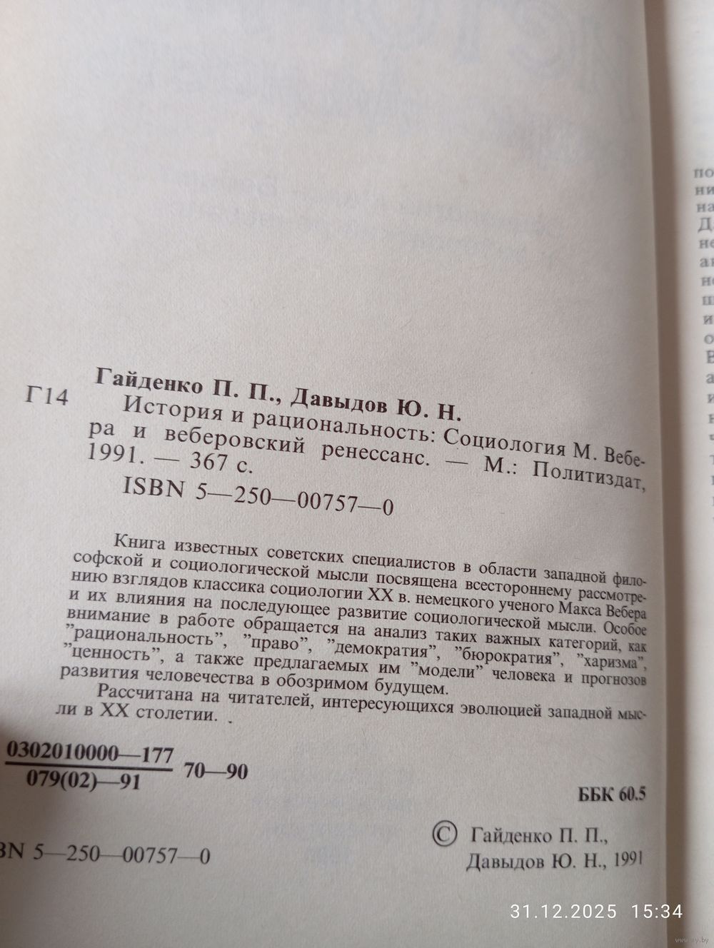 История и рациональность. Социология Макса Вебера. Гайденко П. М. Политиздат 1991. В хорошем состоянии, тв переплет. 367 с . Возможность отправки Белпочтой, полная предоплата