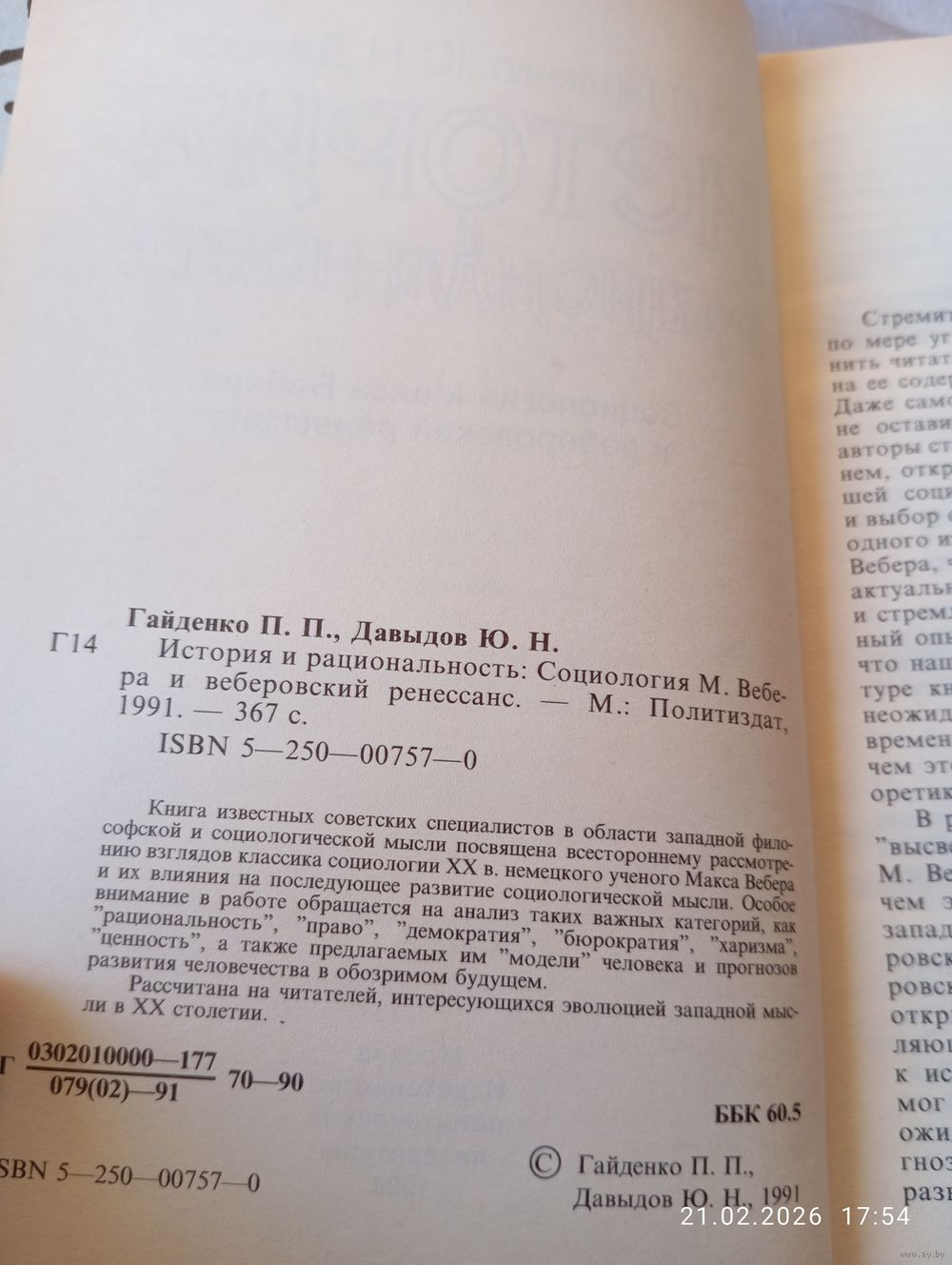 История и рациональность. Социология Макса Вебера. Гайденко П. Политиздат 1991. В прекрасном состоянии, тв переплет. 367 с. Возможность отправки Белпочтой, полная предоплата
