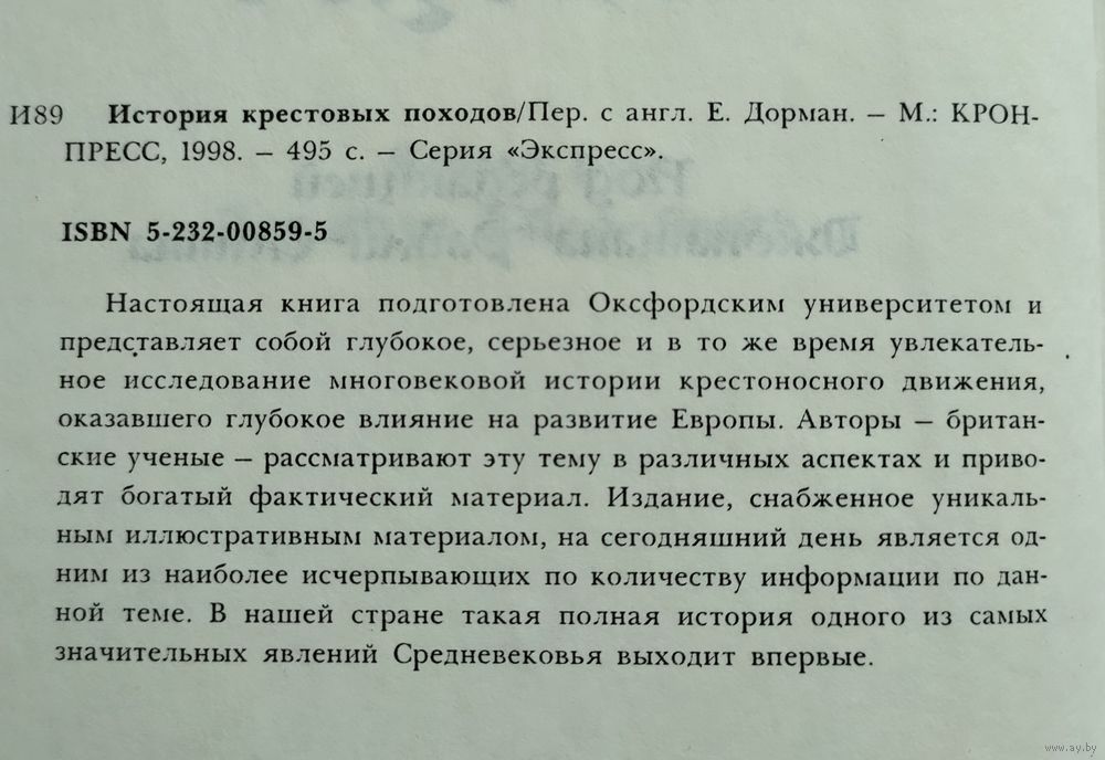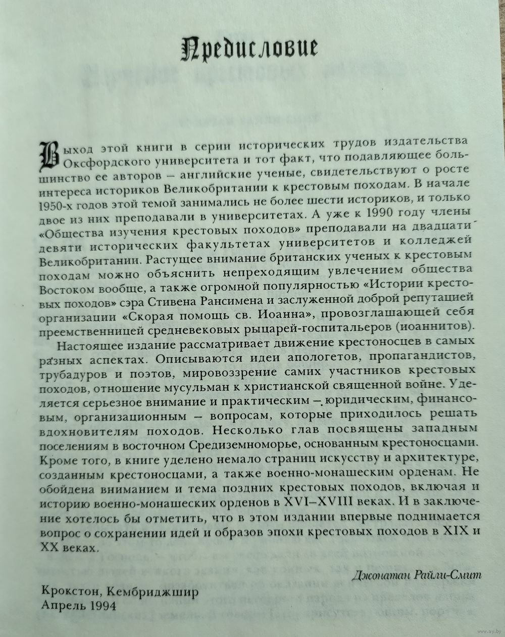 История крестовых походов. Серия: Экспресс. Под редакцией Джонатана Райли-Смита . Пер. с англ. Е.Дорман. М.: Крон-Пресс, 1998г., 495 с. Твёрдый переплёт. Чуть увеличенный формат.