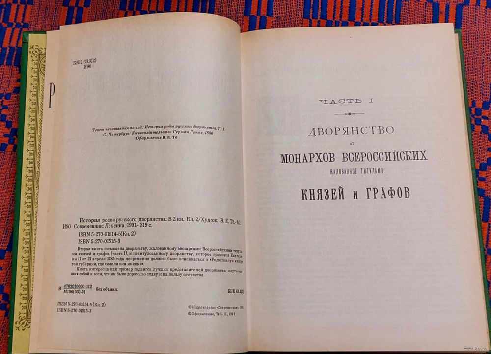 История родов русского дворянства. т. 1-2 Цана за 2 тамы.