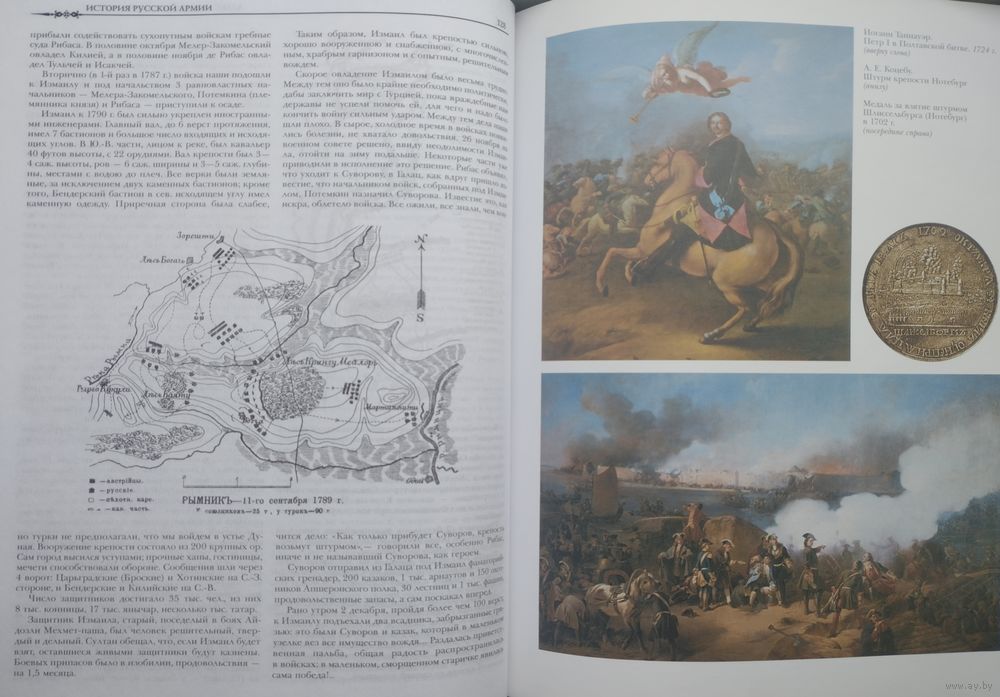 Подарочное издание. Большой энциклопедический формат. Ляссе. Тираж 9000 экз. 768 стр. Среди множества прекрасных книг по отечественной военной тематике это издание - драгоценная редкость. В нем события и факты военной истории России с древнейших времен описывают и анализируют представители прославленных офицерских династий. Стратегия войны, тактика битв описаны точным и выразительным языком профессионалов ратного дела, генералами и офицерами высшего командного состава российского Генерального штаба. Эта книга будет интересна всем любителям отечественной истории, ведь в ней рассматривается История русской армии от самых истоков до конца XIX века. Знаменитые полководцы и простые солдаты - все они люди, отстаивающие свою землю и выполняющие важнейшие государственные задачи. Книга была выпущена издательством "Эксмо".