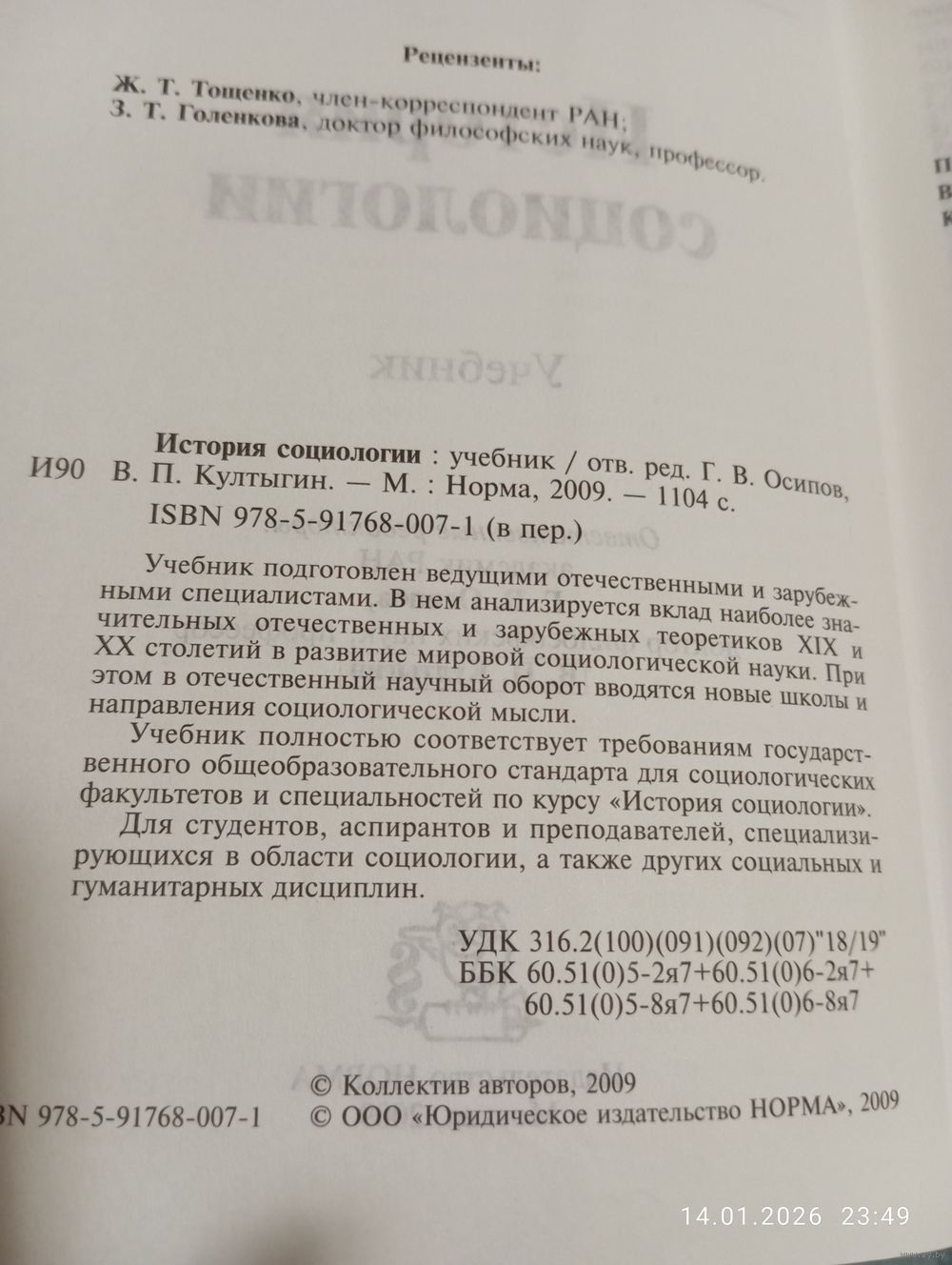 История социологии. Под ред Осипова Г. Редкая. М. Норма 2009. В хорошем состоянии, тв переплет. 1104 с. Тираж 2000. Возможность отправки Белпочтой (исключительно ), полная предоплата на карту Беларусбанк !