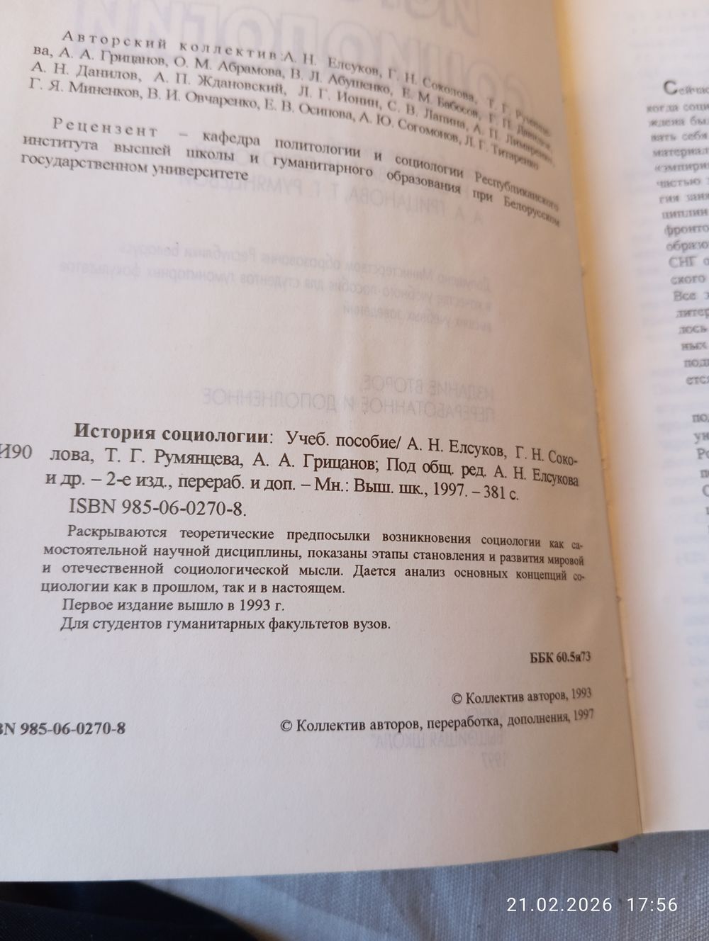 История социологии. Учебное пособие под ред Елсукова А. Мн. Высшая школа 1997. В хорошем состоянии, тв переплет. 381 с. Тираж 10000. Возможность отправки Белпочтой, полная предоплата