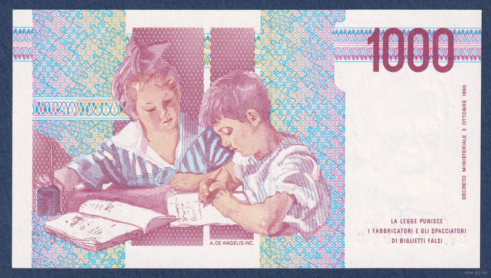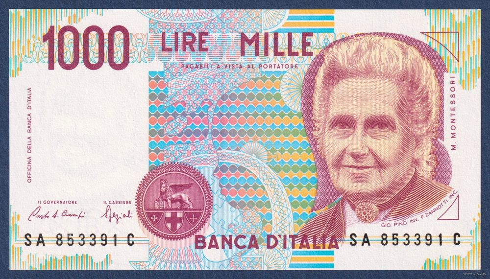 Италия, 1000 лир 1990 г, P-114a (врач Мария Монтессори), UNC