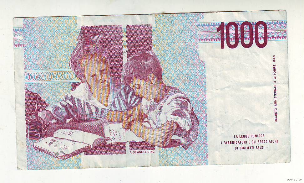 Италия. 1000 лир 1990 год