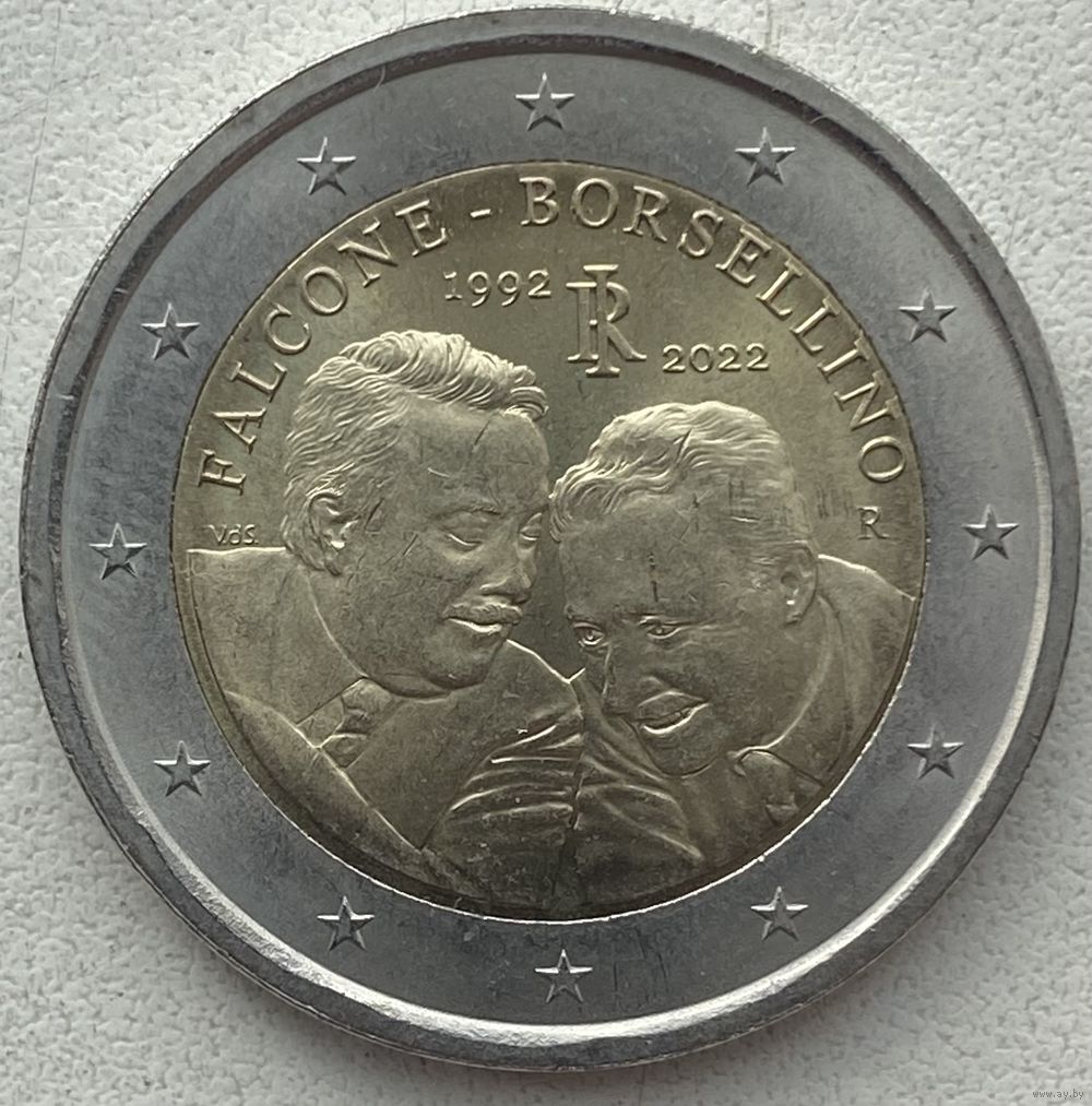 Италия 2 евро 2022 г. 30 лет со дня смерти судей Джованни Фальконе и Паоло Борселлино