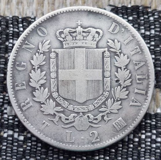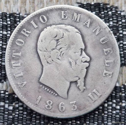 Италия 2 лиры 1863 года. Серебро! Сторгуй за свою цену, предложи обмен! Y70