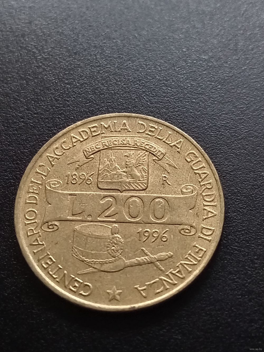 Италия 200 лир 1996 г. - 100 лет Академии таможенной службы.