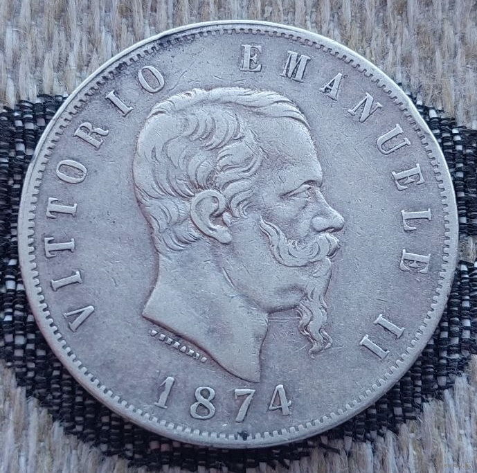 Италия 5 лир 1874 года, AU. Серебро! Сторгуй за свою цену, предложи обмен! S130-2