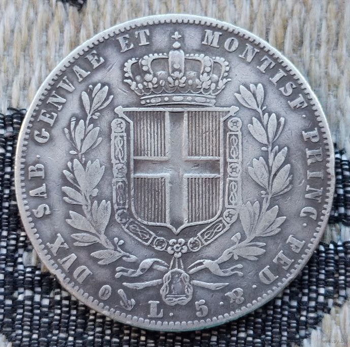 Италия остров Сардиния 5 лир 1847 года. Король Альберт. Серебро! Сторгуй за свою цену, предложи обмен! S210