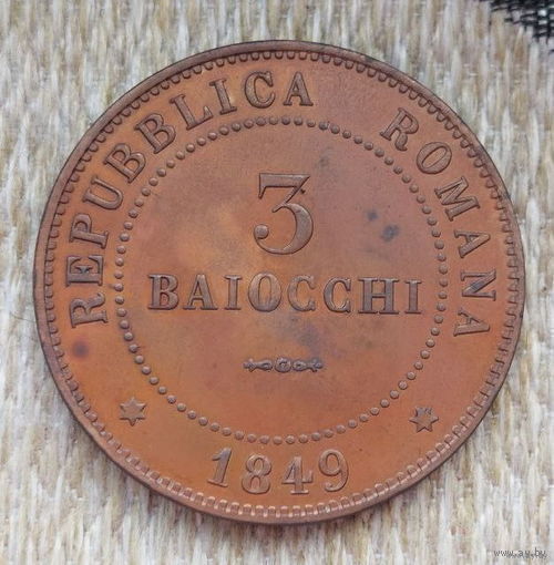 Италия. Римская Республика 3 байоччи 1849 года. Орел, держащий топор и ликторскую фасцию. Предложи свою цену или обмен!