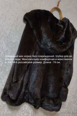Итальянская норковая шуба "Автоледи" в отличном состоянии, без дефектов. Размер 44 (S/M). Глубокий коричневый цвет и натуральный блеск меха подчеркивают элегантность модели. Шубка выполнена из качественных материалов для комфорта в любую погоду. Длина изделия составляет 73 см, длина рукава от плеча — 65 см, обхват в районе груди - 102 см. Дополнительная информация на фото в объявлении.
