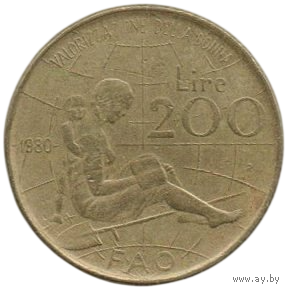 Итальянская Республика (Италия). 200 лир 1980. ФАО - Международный женский год. Мария Текла Артемизия Монтессори- врач и педагог.