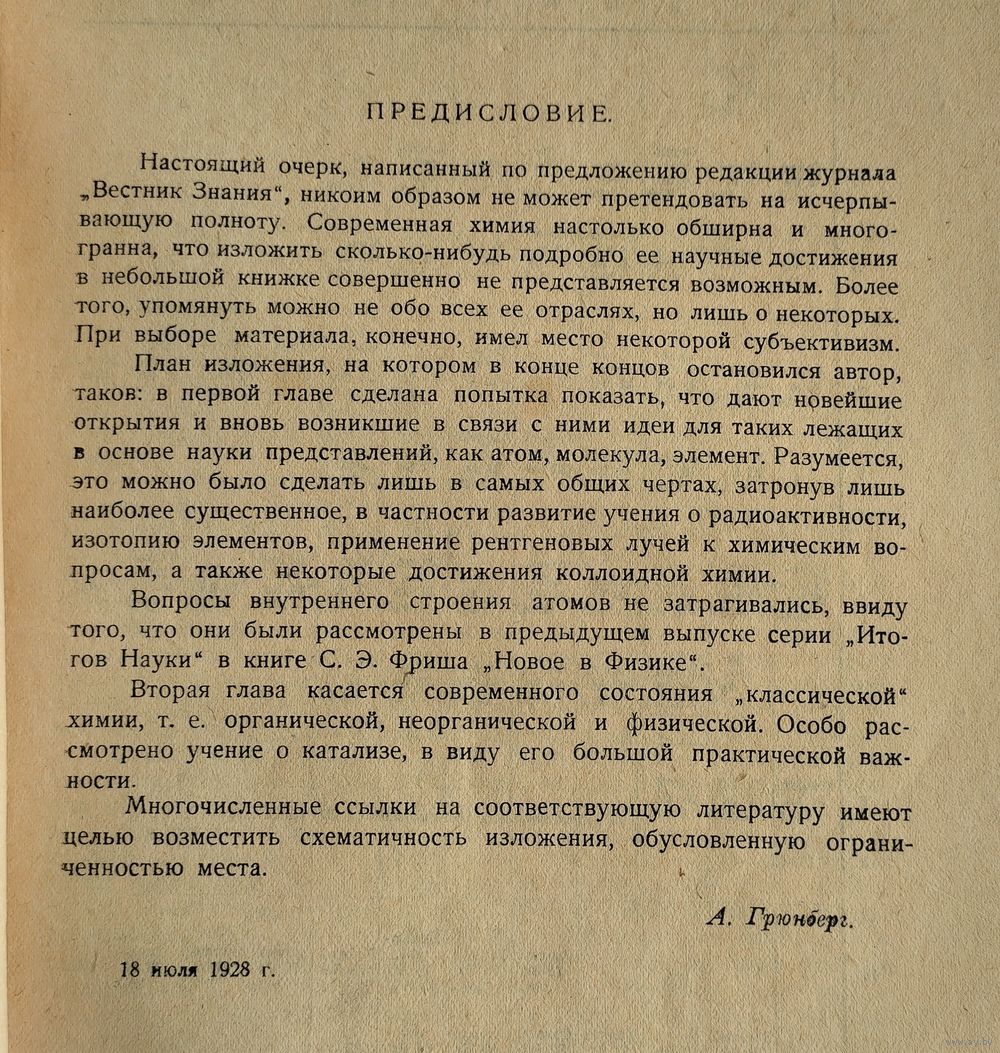 Часть 1. А.А. Грюнберг. Новое в химии. Гл.1- Новые направления в химии; реальность атомов и молекул; эволюция представления об элементе. Гл. 2- Успехи "классической" химии.