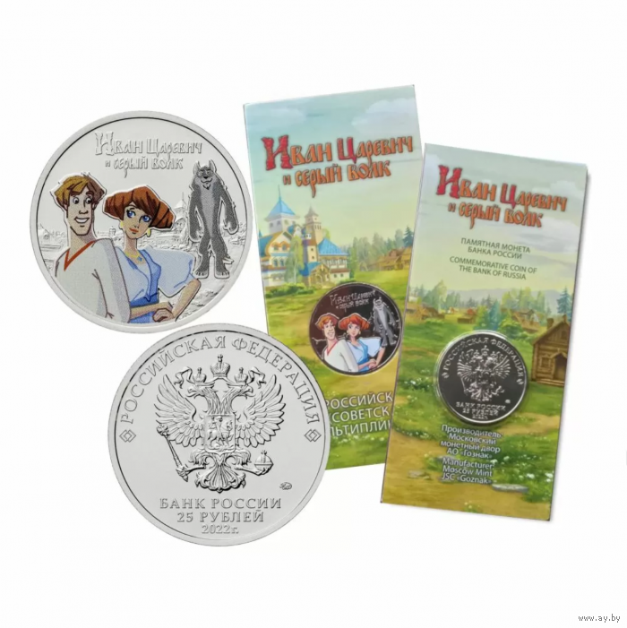Иван Царевич и Серый волк. 25 рублец 2022г. Цветная в блистере.