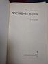 В книгу известного белорусского прозаика Ивана Науменко "Последняя осень" вошли его лучшие рассказы и повести разных лет. Герои многих из них искренние, еще немного наивные юноши и девушки, на неокрепшие плечи которых легли трудные испытания Великой Отечественной войны. Отдельные рассказы посвящены нашим современникам. Со свойственным писателю лиризмом, с доброй улыбкой и философскими раздумьями он рассказывает о жизни, мечтах, стремлениях своих героев, их дружбе и любви.