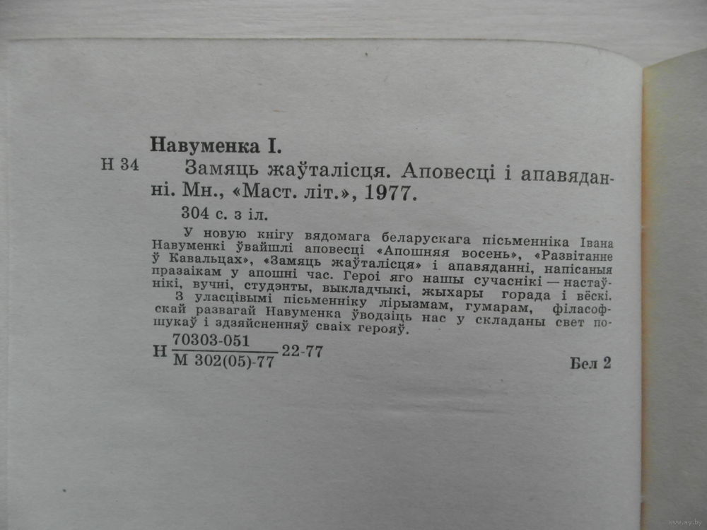 Першыя творы Івана Навуменкі былі надрукаваны яшчэ да Другой сусветнай вайны. У 1946 годзе ў абласных і рэспубліканскіх перыядычных выданнях змяшчаліся нарысы, фельетоны, вершы маладога аўтара[12]. Першыя апавяданні з’явіліся ў 1955 годзе (часопіс «Маладосць»). Аўтар кніг апавяданняў, аповесцей «Сямнаццатай вясной» (1957), «Хлопцы-равеснікі» (1958), «Верасы на выжарынах» (1960), «Бульба» (1964), «Таполі юнацтва» (1966), «Вераніка» (1968), «Тая самая зямля» (1971), «Падарожжа ў юнацтва» (выбранае, 1972), «Замець жаўталісця» (1977), «Пераломны ўзрост» 1986), «Водгулле далёкіх вёснаў» (1989), раманаў «Сасна пры дарозе» (1962), «Вецер у соснах» (1967), «Сорак трэці» (1974), «Смутак белых начэй» (раман, аповесць, апавяданні, 1980), «Летуценнік. Смутак белых начэй» (1985), «Асеннія мелодыі» (раман, апавяданні, 1987), аповесці для дзяцей «Вайна каля Цітавай копанкі» (1959), «Капитан Степь идет в разведку» (з В. Мамантавым, 1982), п’есы «Птушкі між маланак» (1982). Выйшаў Збор твораў у 6 тамах (1981—1984).