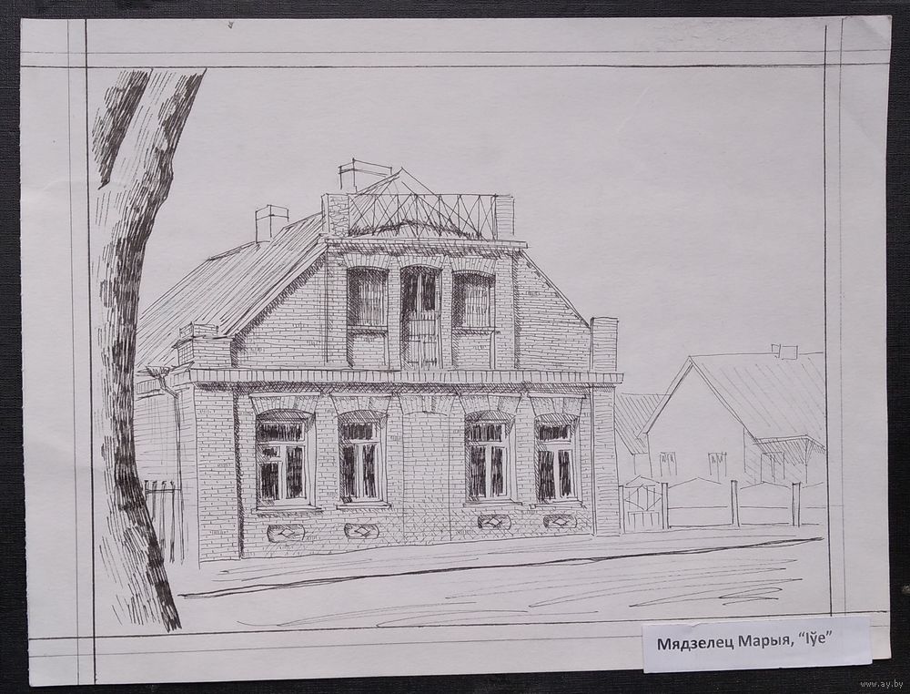 Ивье. Старая застройка. Тушь. Бумага. Студенческая работа. 20х27 см