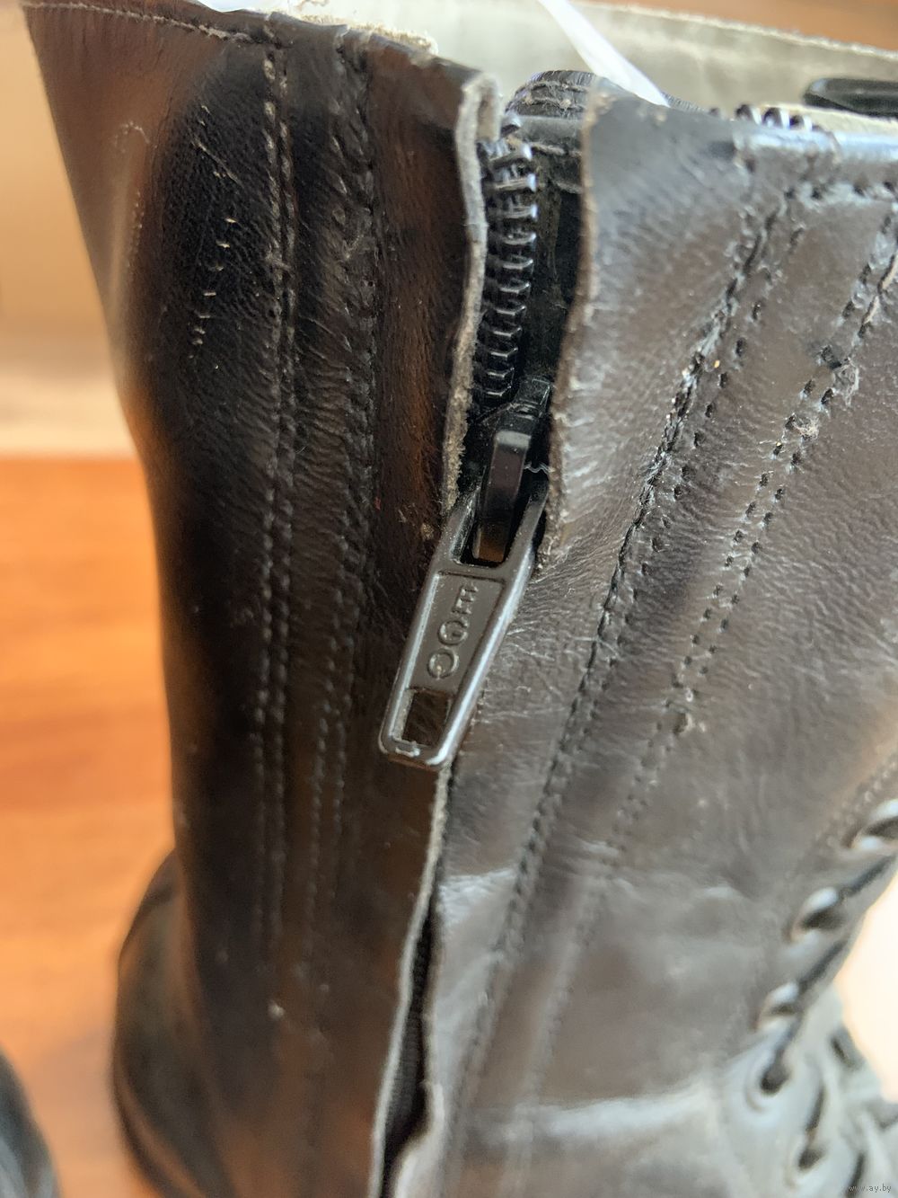 | От длительного хранения кожа немного сжалась.В процессе носки всё разгладится.Замки в идеале.Полностью пригодны к носке. | |