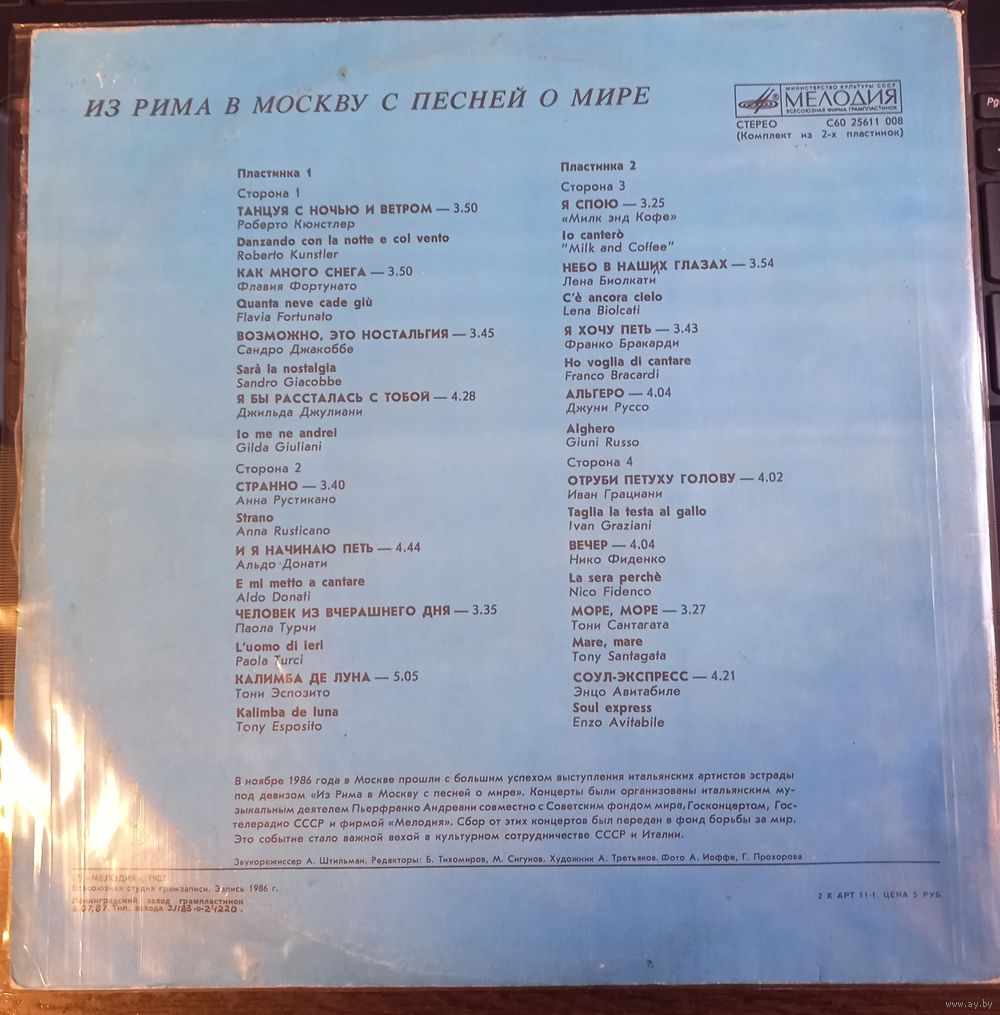 | Исполнитель | Из Рима в Москву с песней о мире |