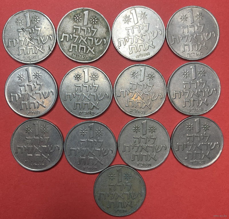Израиль, 1 лира, 13шт. все разных лет