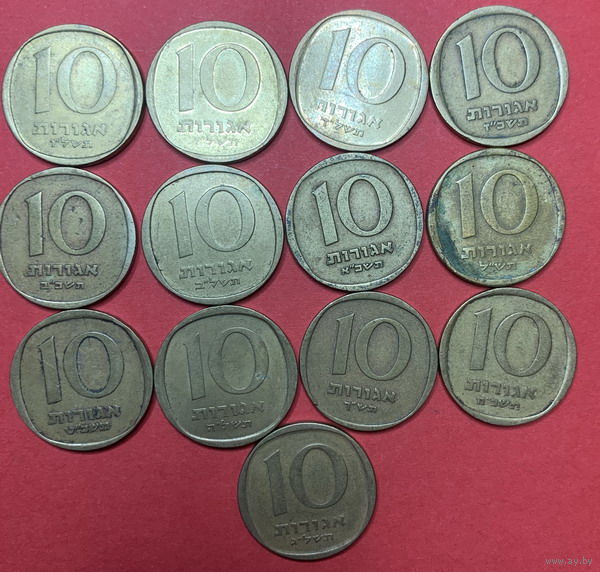 Израиль, 10 агорот, 13шт. все разных лет