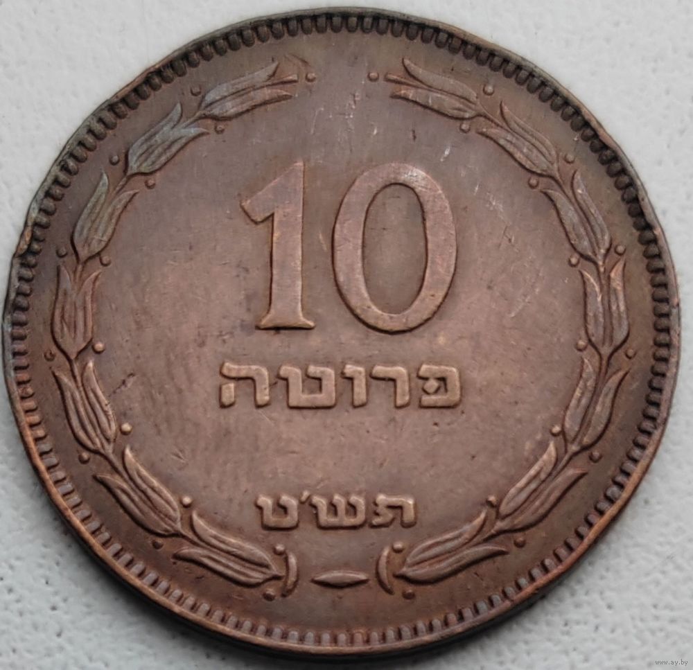 Израиль 10 прут 1949_С точкой (жемчужина)_KM# 11