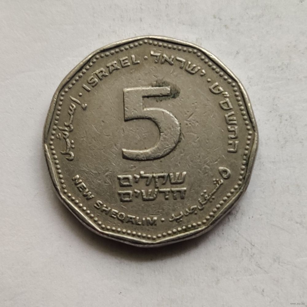 Номер KM # 207 Страна Израиль Период Государство Израиль (1985 - 2025) Валюта Израильский шекель Вид чекана Регулярный чекан Номинал 5 новых шекелей Год 1990 - 2017 Материал Медно-никелевый сплав Гурт Гладкий Форма12-угольник Отношение авс/рев Медальное (0°) Вес (g) 8,2 Диаметр (mm) 24 Толщина (mm) 2,4